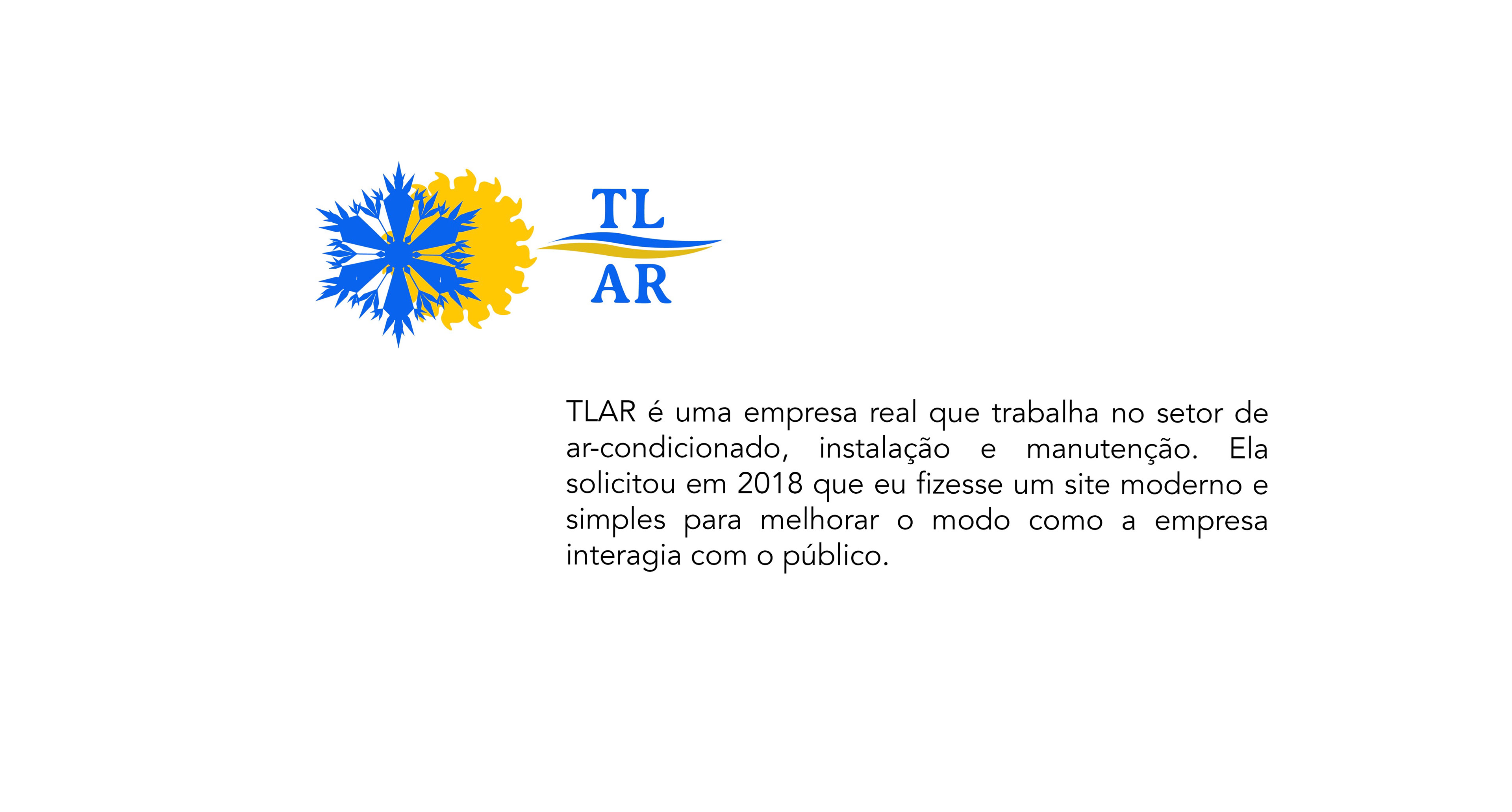 TLAR é uma empresa real que trabalha no setor de ar-condicionado, instalação e manutenção. Ela solicitou em 2018 que eu fizesse um site moderno e simples para melhorar o modo como a empresa interagia com o público.